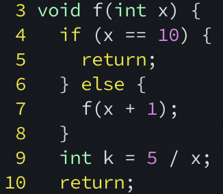 elsebranch, it calls f again. And by inductive hypothesis, it returns with memory thatxis [10, 10].So at line number 9,