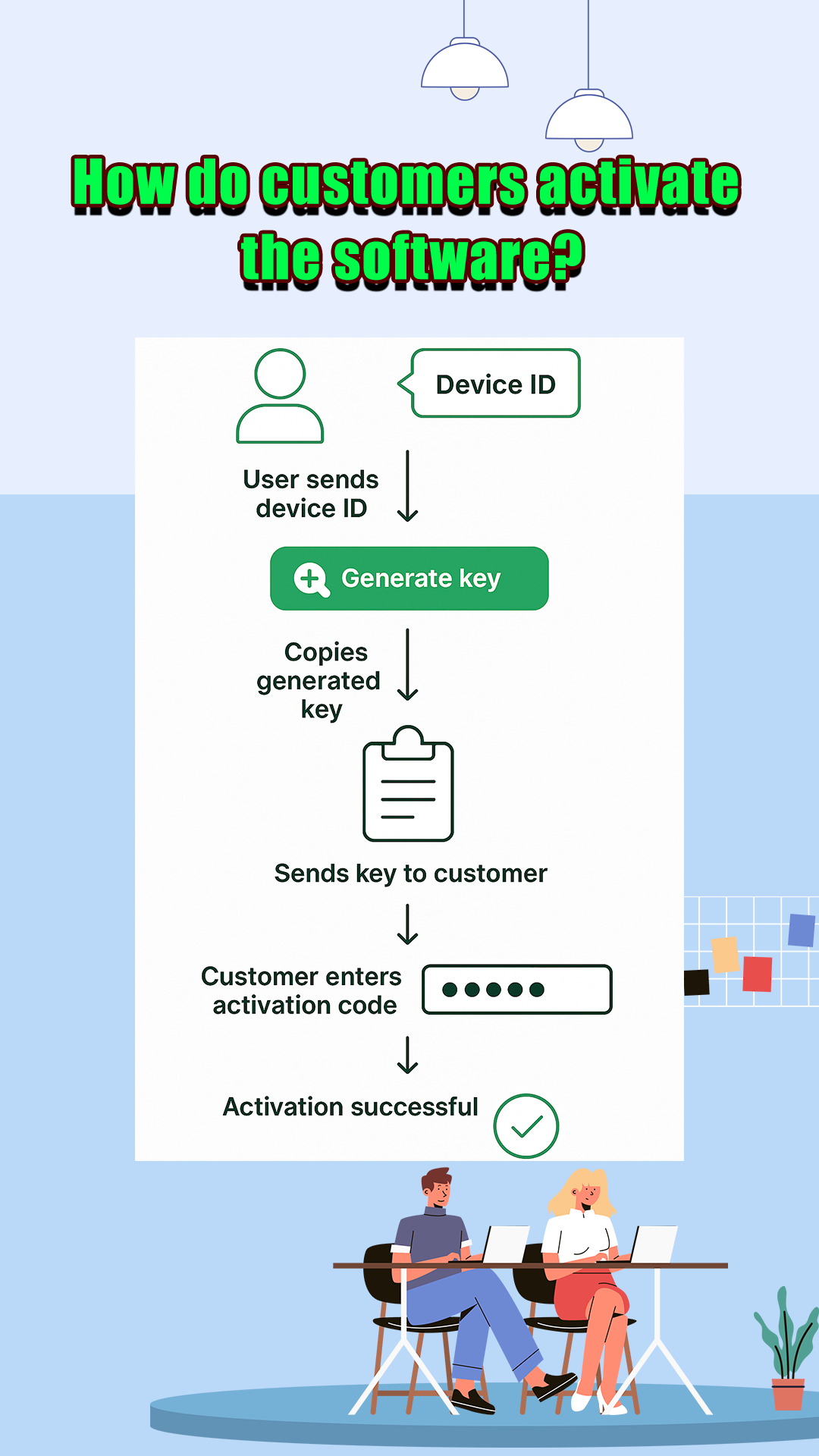 - Custom license key generator supporting flexible durations (1 day to lifetime).