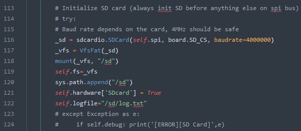 I'm having trouble getting SD card to work. It trips up at the very first step during initialization. It throws the [ERROR] no SD card message. I feel like I'm missing something basic. Can you suggest some things to check/try please? Even dumb things like "did you push it all the way until it clicks?" I'm running the unmodified advanced beep-sat. Tried both 8 GB and 32 GB SanDisk cards. |