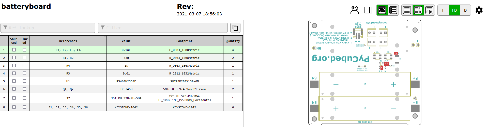 Hey @Mainestar. All of the test points and connectors are optional on the battery board. The goal was to give folks many options in how they interface with it. That's why those footprints are specifically not listed in the interactive BOM: Personally I just use a single vertical JST connector (and no test points), as illustrated on the battery board overview page and the board's repo. Whomever you're having assemble the boards is going to charge a lot for hand soldering of any through hole components (like the test points or screw terminals), so I recommend only populating what you expect you'll need. P.S. I'd be curious to hear what you get quoted for assembling these boards (if you don't mind reporting back). Good luck! |