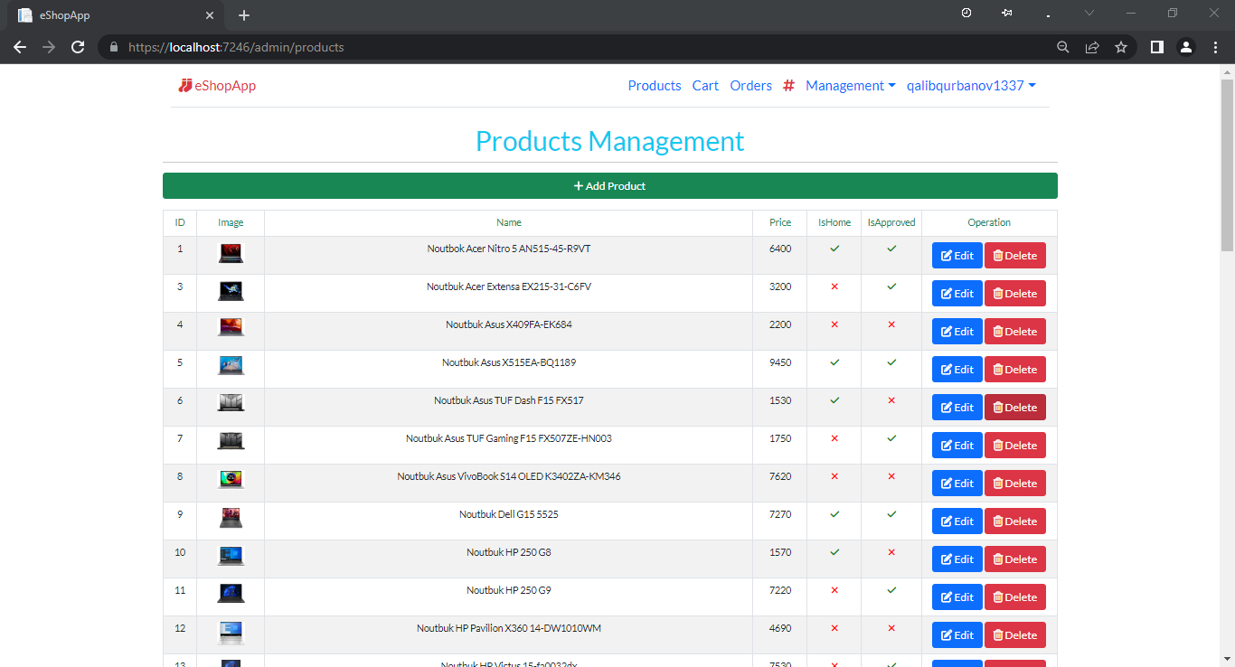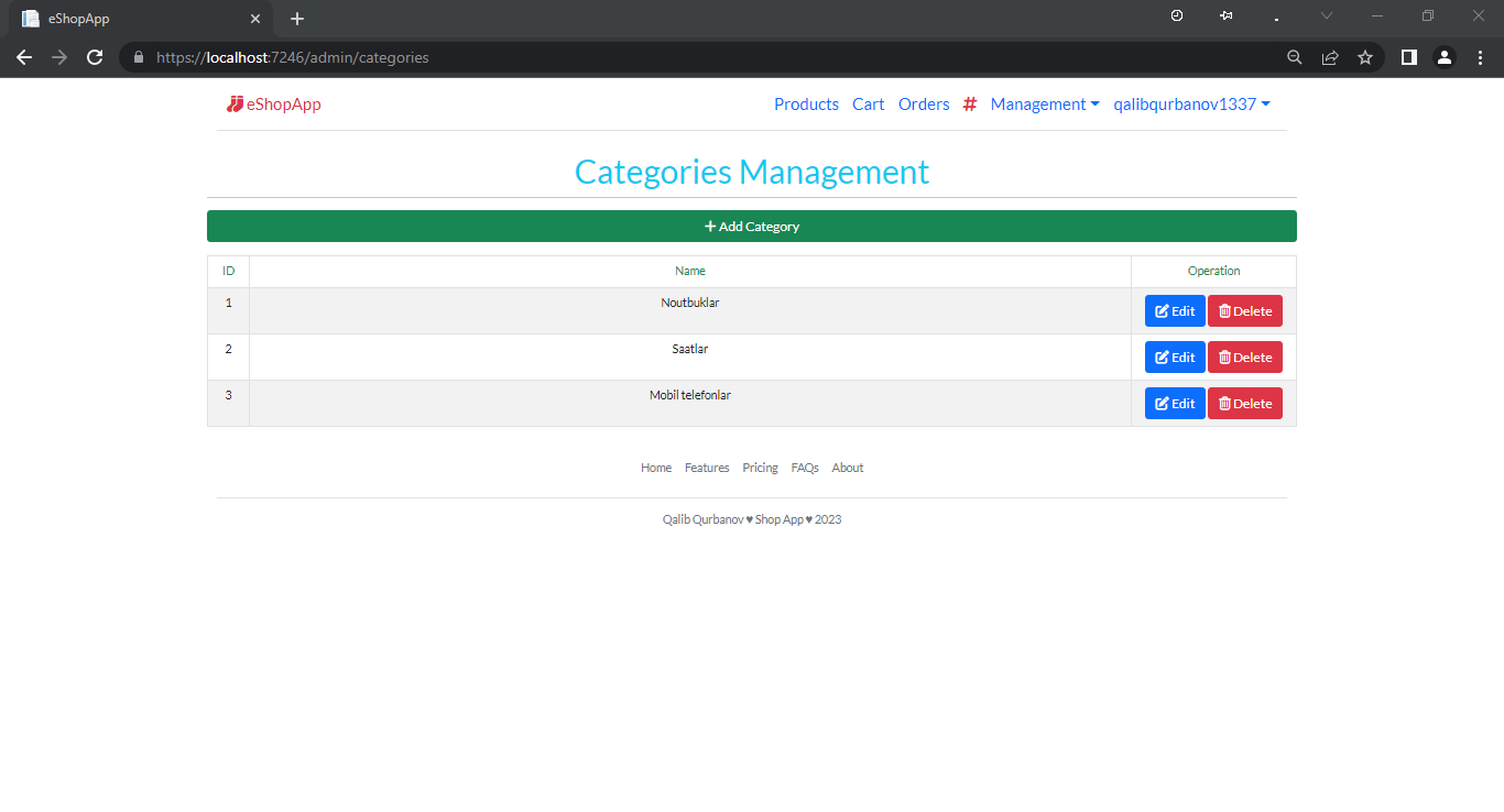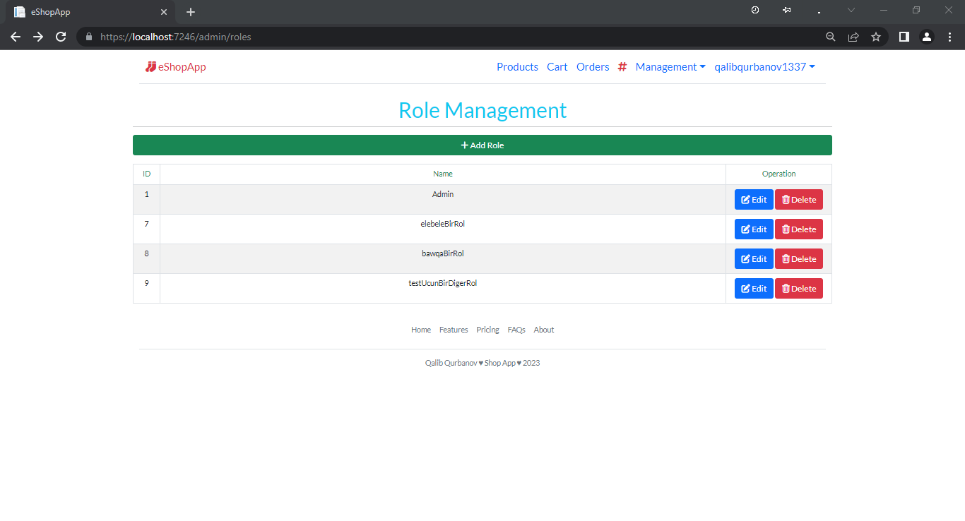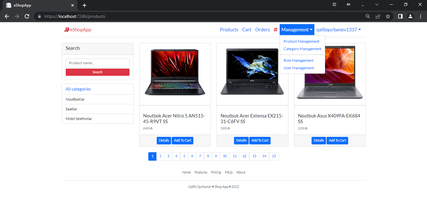 - Management səhifələri: