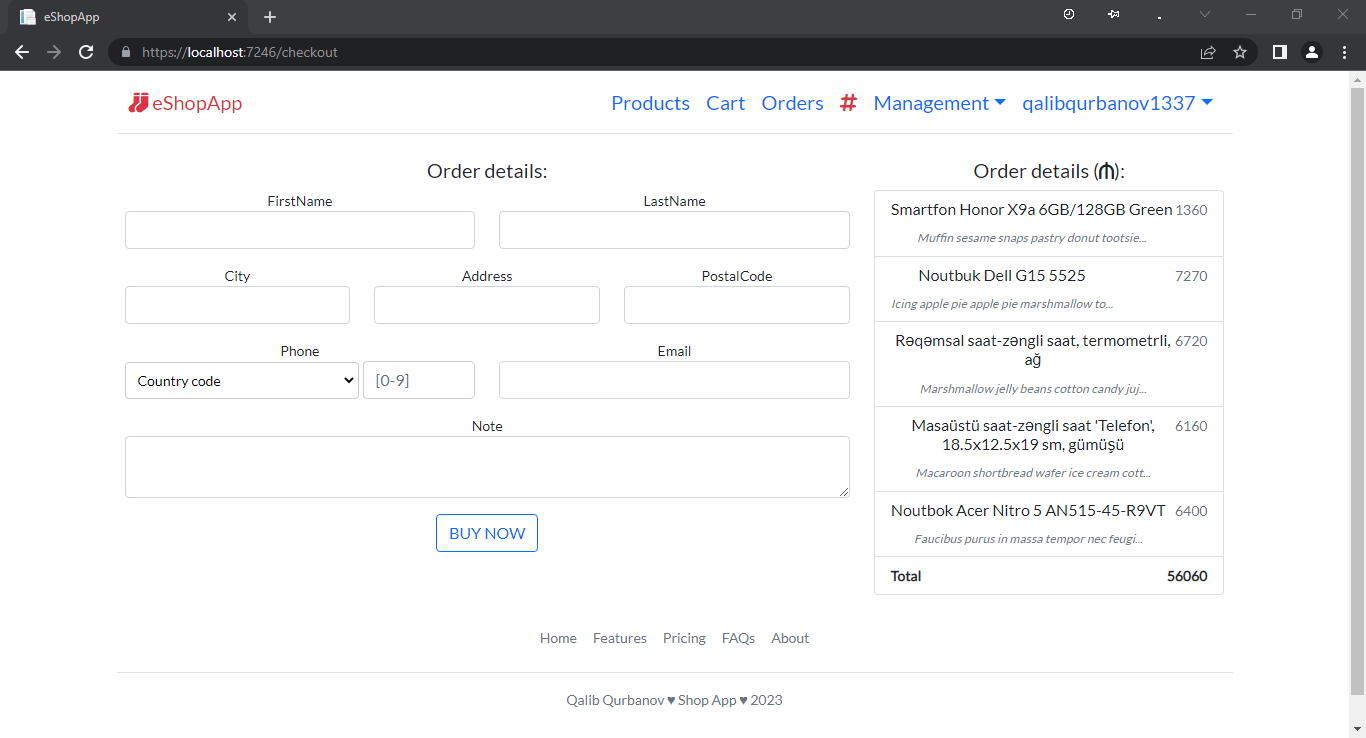 Sadə onlayn mağaza saytı.
