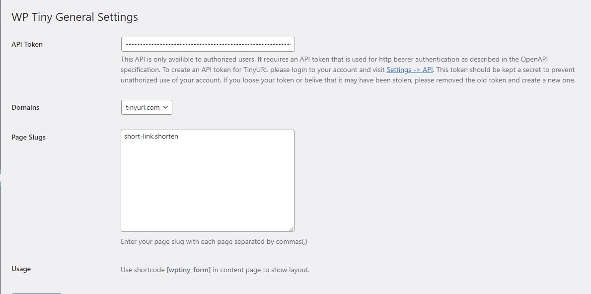 Note: This API is only availible to authorized users. It requires an API token that is used for http bearer authentication as described in the OpenAPI specification. To create an API token for TinyURL please login to your account and visit Settings -> API. This token should be kept a secret to prevent unathorized use of your account. If you loose your token or belive that it may have been stolen, please removed the old token and create a new one.