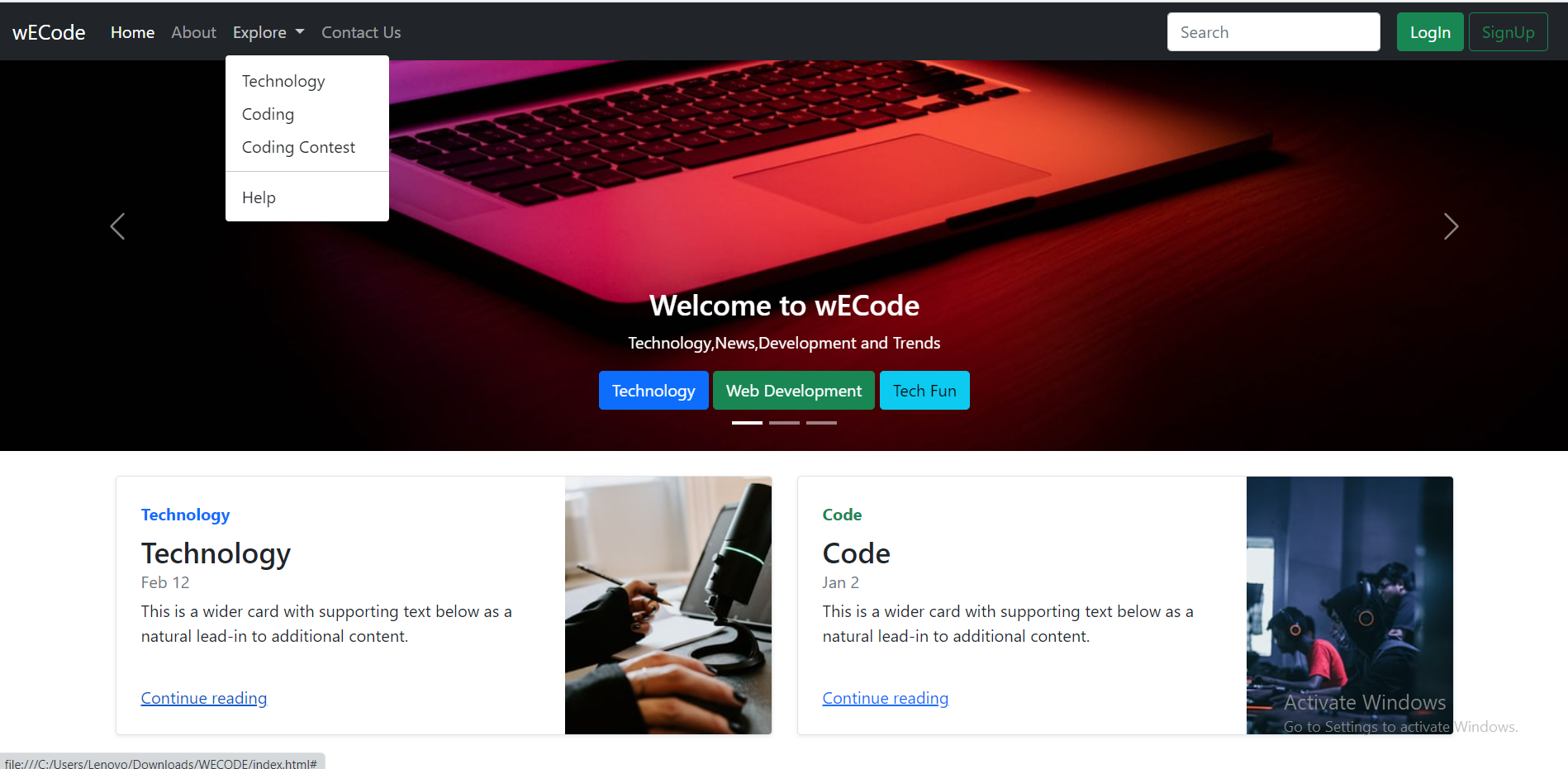 "WeCode" is a frontend website template with various sections and pages. It's a sample website that's freely available for anyone to use, providing a ready-made foundation for web projects. It simplifies web development, allowing users to quickly use the template for their own purpose.