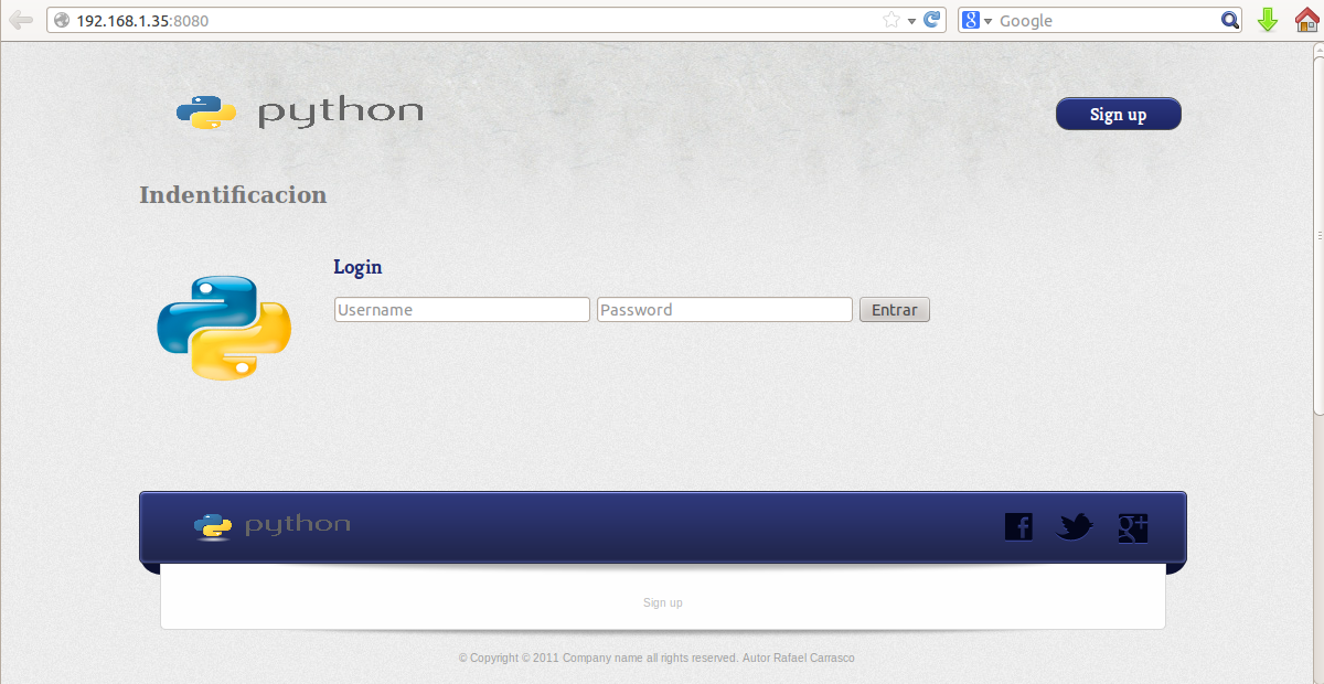 Ejecutamos la web con el propio servidor que nos proporciona webpy y vemos que todo funciona.
