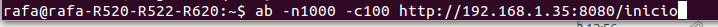 Con una carga de 1000 peticiones y 100 solicitudes concurrentemente.