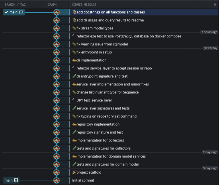 - π¨, π, and π are for refactoring, bug fix and documentation commits respectively.