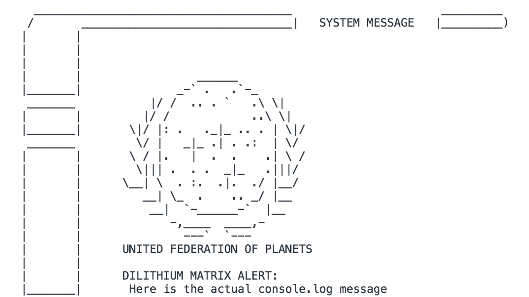 LCARS Log enhances the console.log by applying (via .apply) an LCARS ascii 'wrap' to messages.