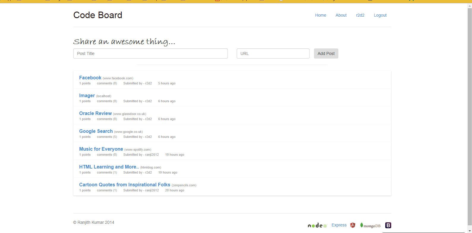 Reddit/ HackerNews sort of web application made from MEAN Stack..