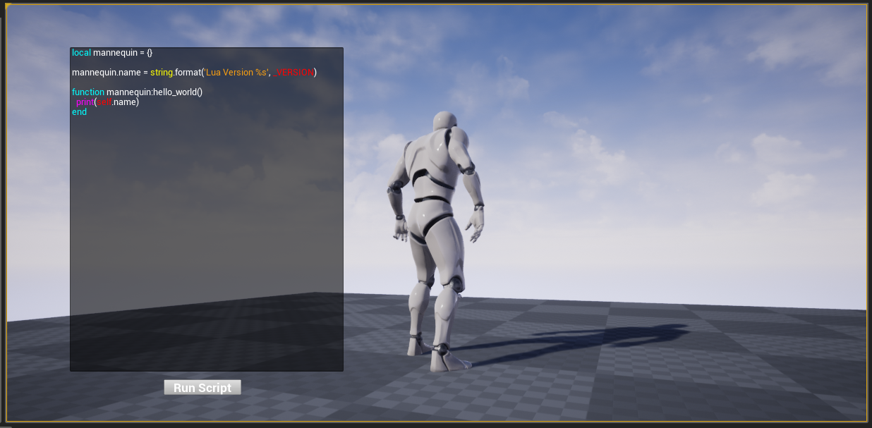 return "Hello, i am a lua script, current time is: " .. current_timeNow the script will add the call_me_from_unreal function to the global table: