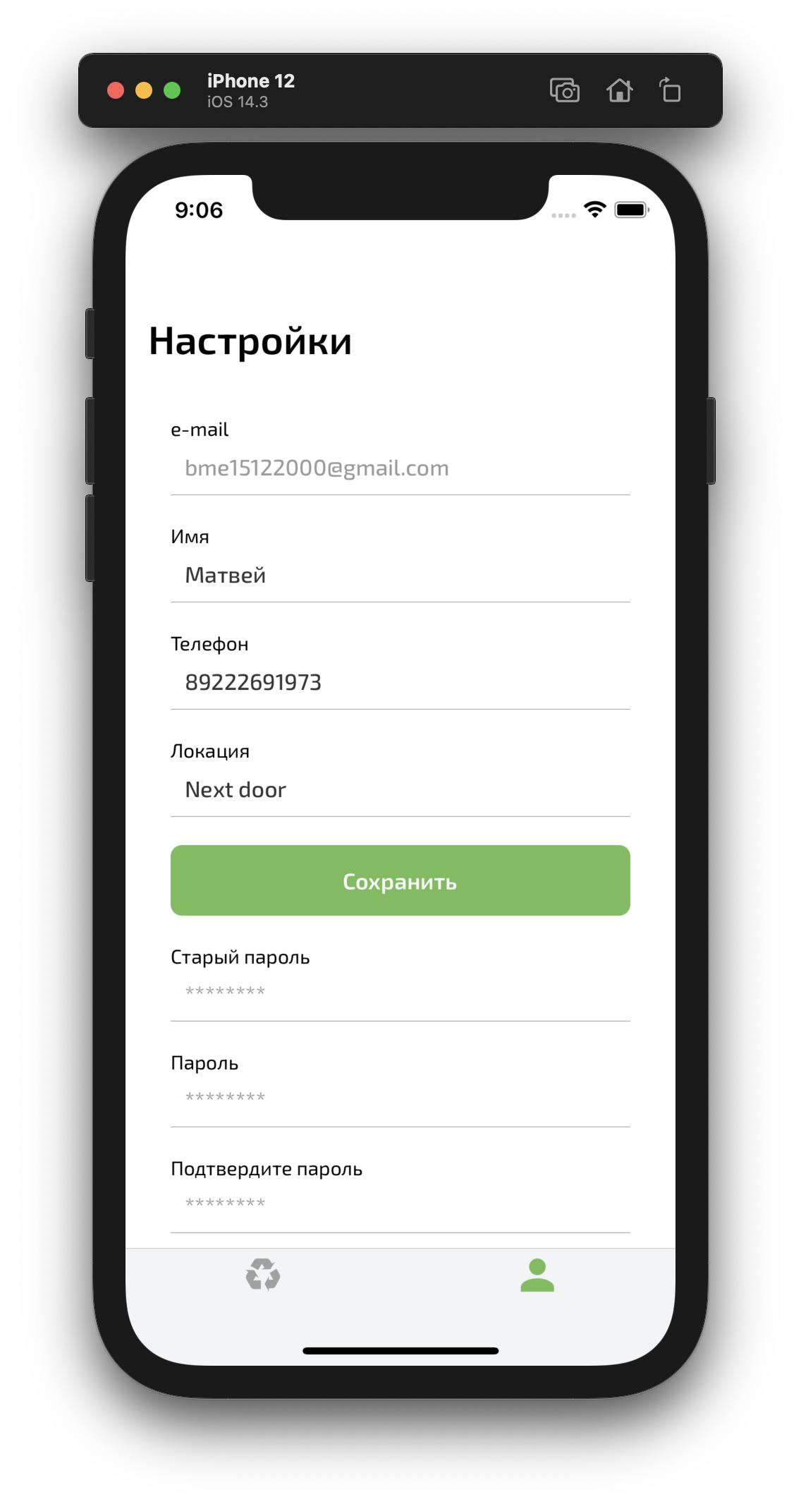 Applications for ITMO for centralized collection of recyclable waste within the university Web version