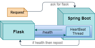 /health返回微服务状态在 Spring Boot 服务中,启动一个线程对该接口进行监听,如果发现微服务异常,则对所有将转发到 Flask 服务的请求进行熔断。