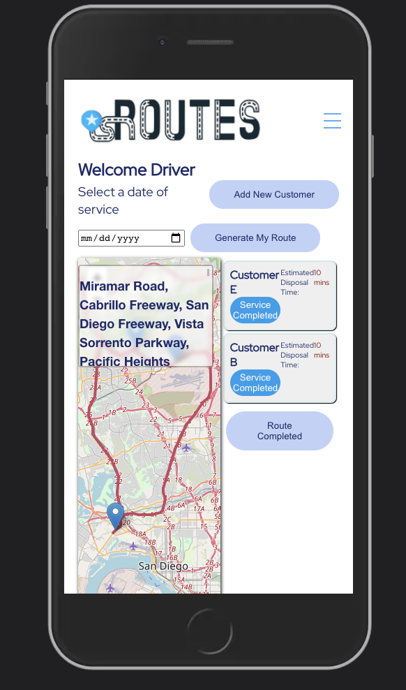 Routes is a responsive and interactive application designed for San Diego Medical Waste. Two users have access to the features of this application.