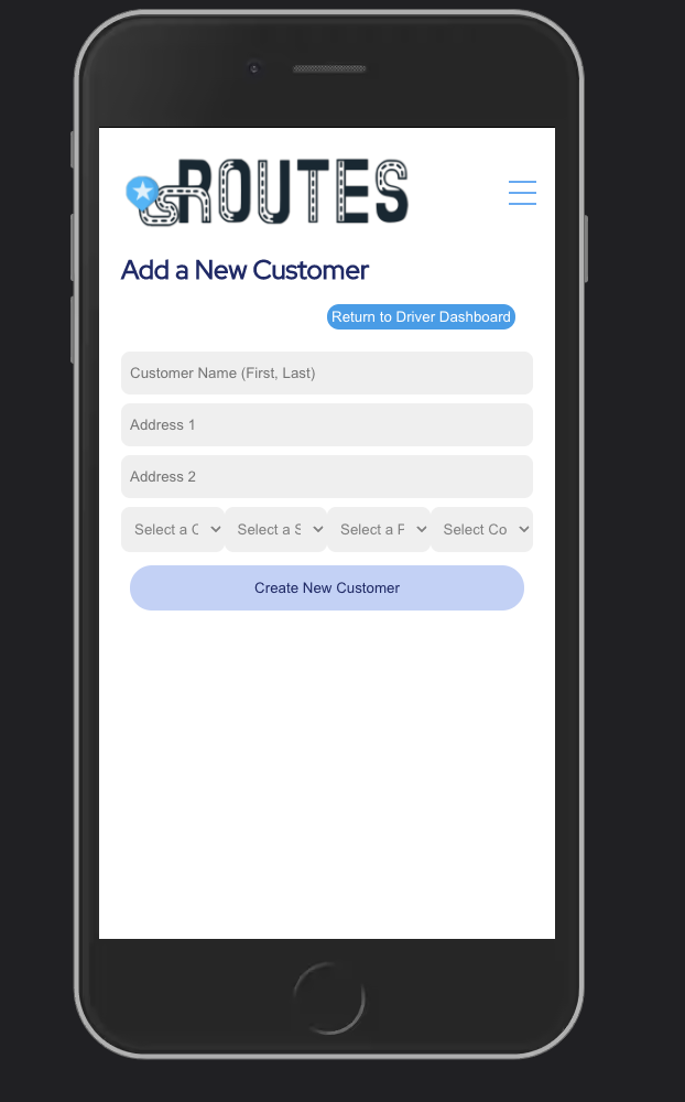 Drivers can view their driving route for the day optimized by our back-end team. Additionally, they can "mark-off" when a location's service is complete. Drivers also have administrative acess to add customer info to a certain day's route.