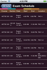 The current state of the exam schedule portion of the UW Suite is that it will display the most recently available Exam schedule.