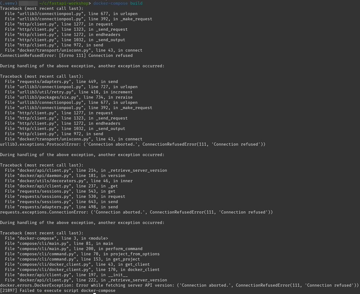 Porém, mesmo iniciando do zero e tendo instalado o Docker e docker-compose como recomendado na documentação, encontrei problemas ao utilizar o comando