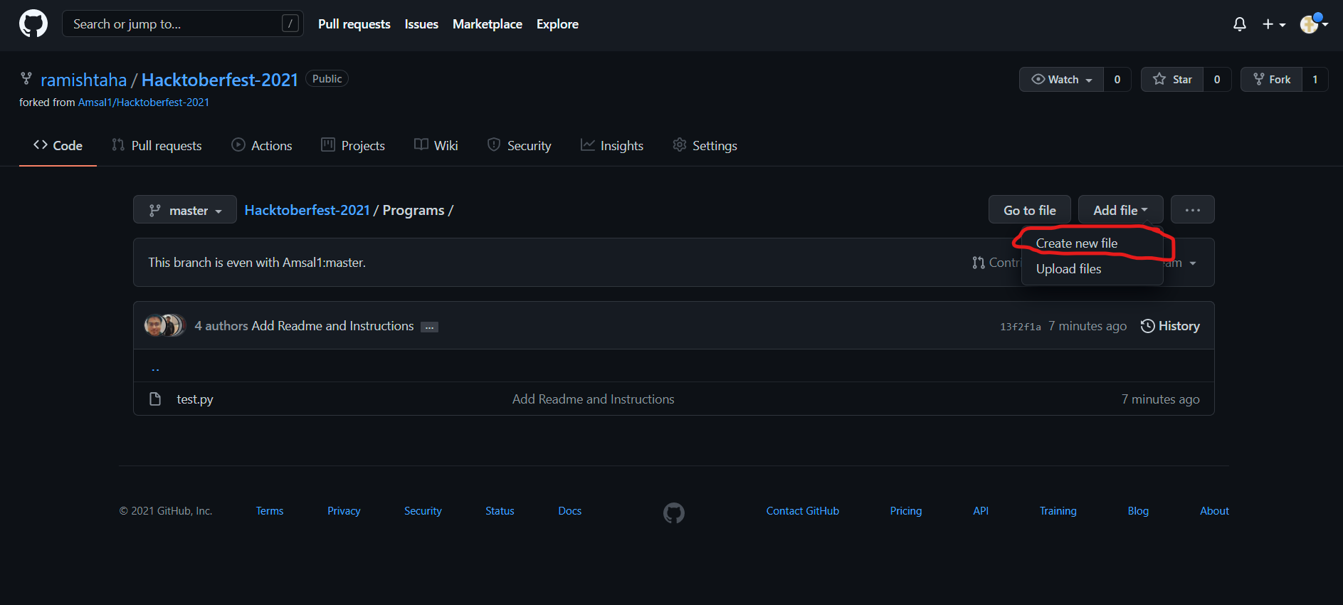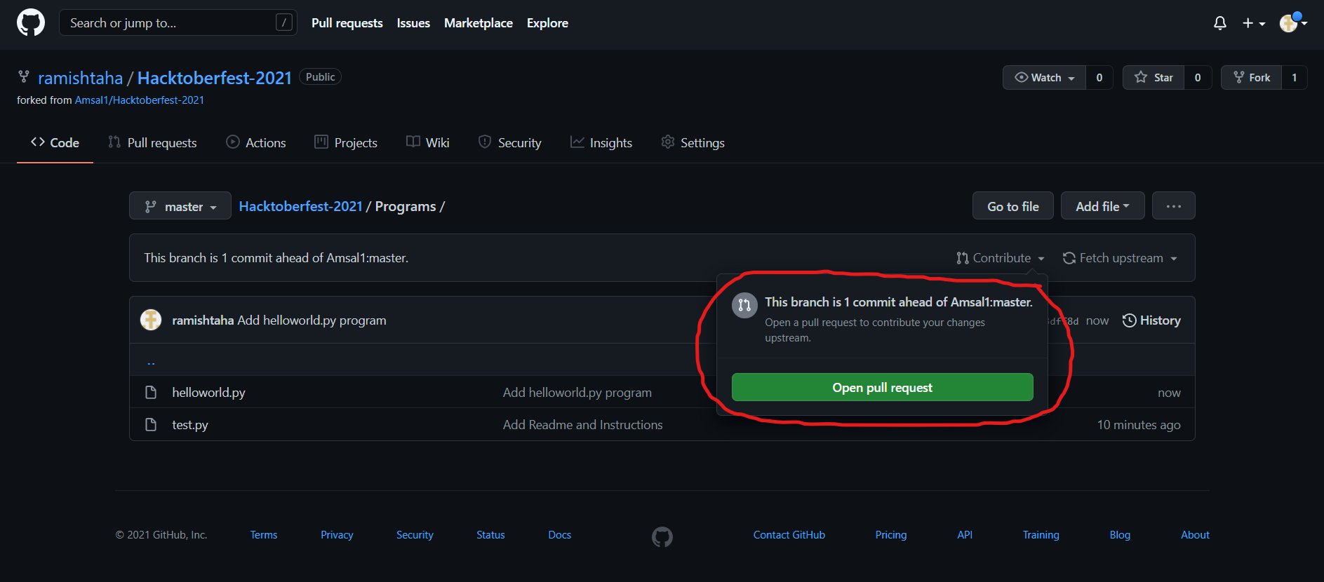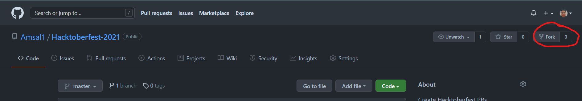 3. Then go to https://github.com/Amsal1/Hacktoberfest-2021 and click on *"star"*🌟 and *"fork"*🍴.