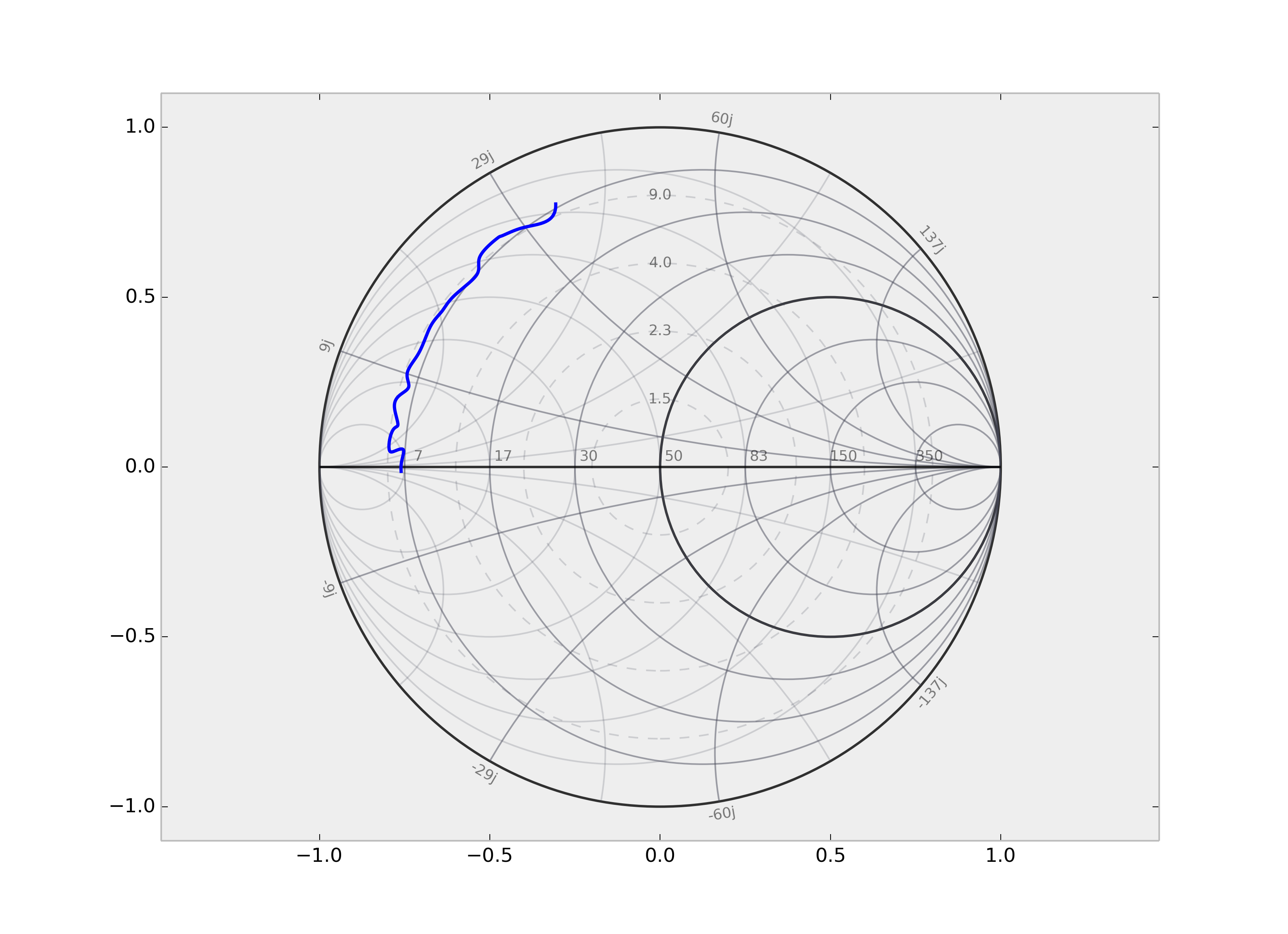 - Smith chart plotting, with interactive data cursors.