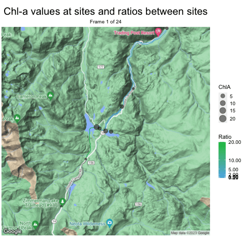 Working on creating Animations in tmap and ggplot/ggmap to display chemistry data as they relate at and between our Cameron Peak Sites.