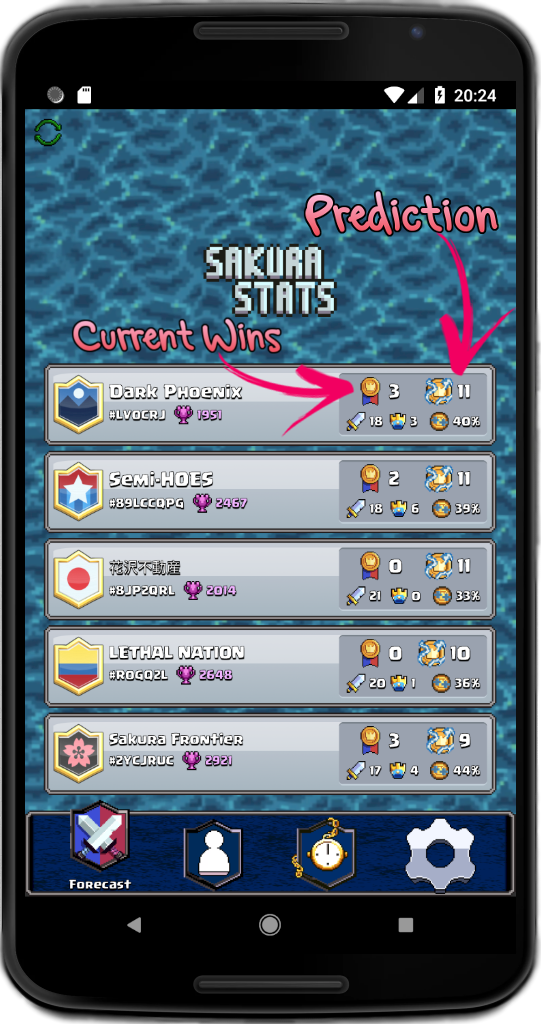 Its unique feature is to forecast the outcome of an ongoing Clan War with moderate accuracy. This is truly useful if you plan on notifying your clanmates early of an upcoming loss and taking extra caution when building a deck or playing the final battle.