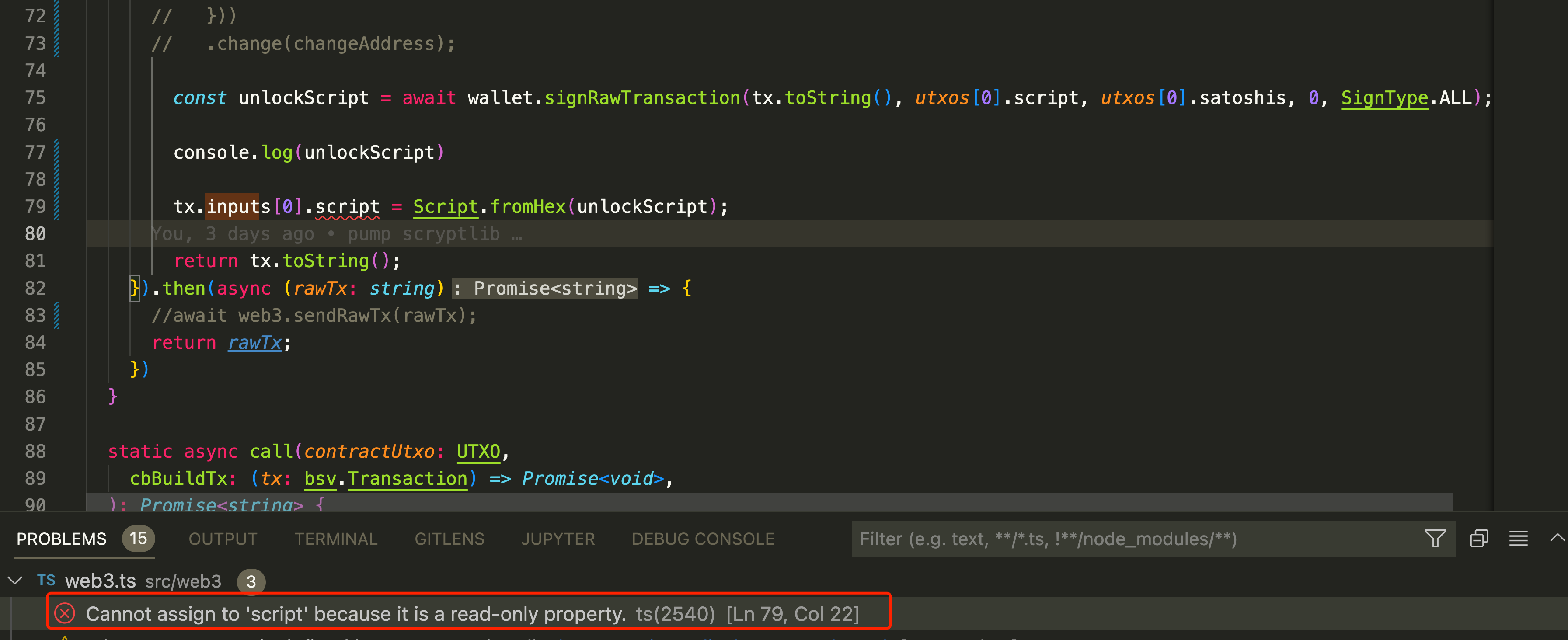 hey, i call my wallet to sign the transation, and then i need to set the signature to the transation, but i got this error: ``` Cannot assign to 'script' because it is a read-only property. ``` <img width="1793" alt="image" src="https://user-images.githubusercontent.com/995909/190936556-59ccd697-bb02-44d0-80b5-72215239a65e.png">