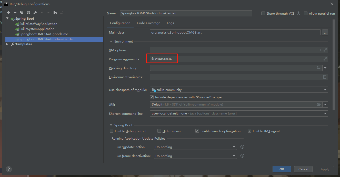 - /community-fortuneGarden/** # 对聚福苑社区的请求不鉴权启动参数输入的是小区英文名称,如果此小区英文名称不在CommunityEnum定义,则会提示找不到小区。
