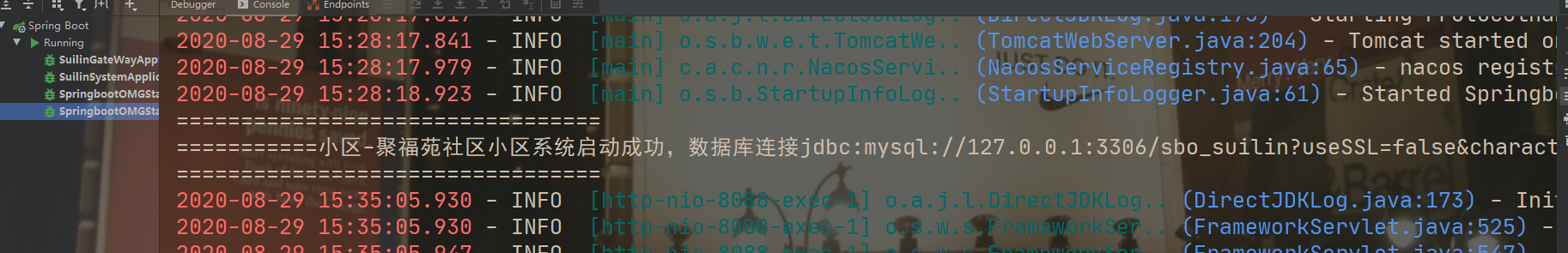 最后成功启动,可以看到当前小区使用的数据库、端口号信息: