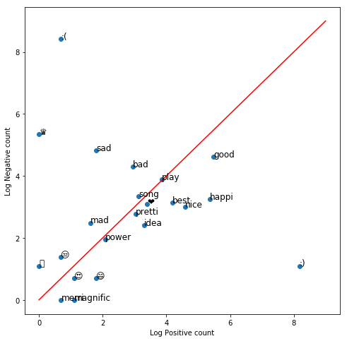 This will build a dictionary where we can lookup how many times a word appears in the lists of positive or negative tweets.
