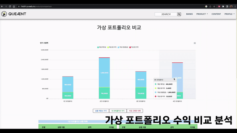 - 은행 예,적금 상품들로 가상 포트폴리오를 생성하고 수익률을 비교/분석