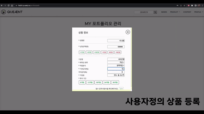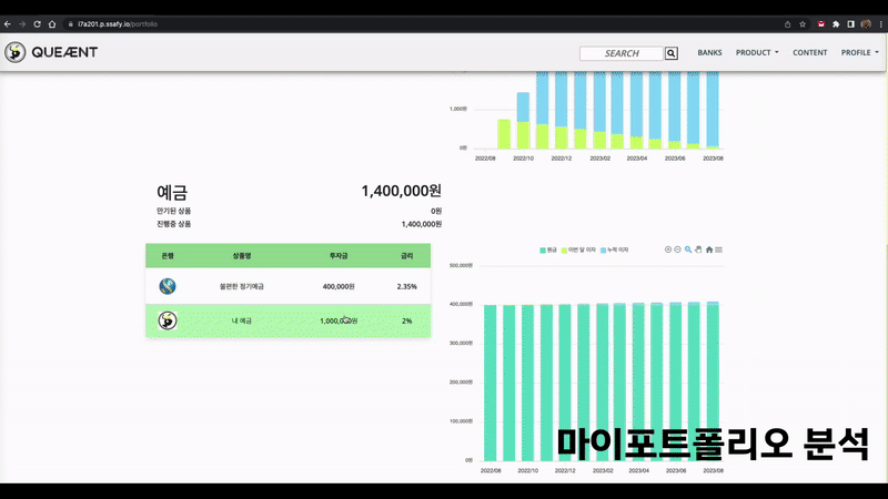 최근, 금리가 올라가며 은행의 예,적금 상품에 관심이 많아졌습니다. QueÆnt에서는 국내 은행들의 예,적금 상품들의 정보를 제공하고, 사용자 조건에 적합한 예,적금 상품을 추천함으로써 효율적으로, 그리고 효과적으로 자신의 포트폴리오를 구성해 수익률을 비교해볼 수 있는 서비스를 제공합니다.