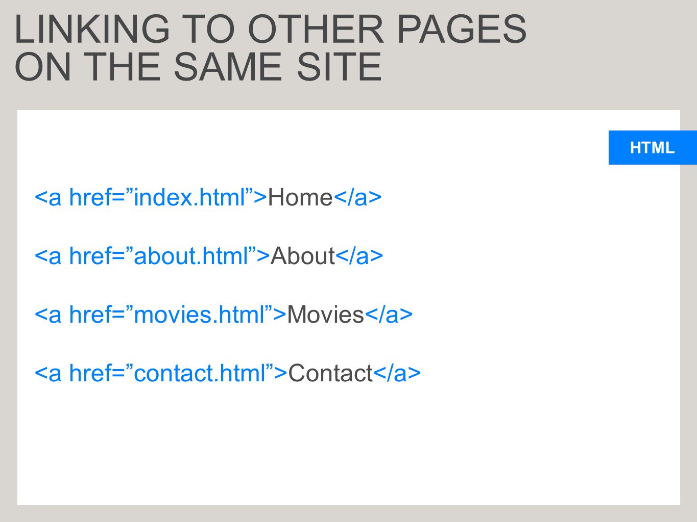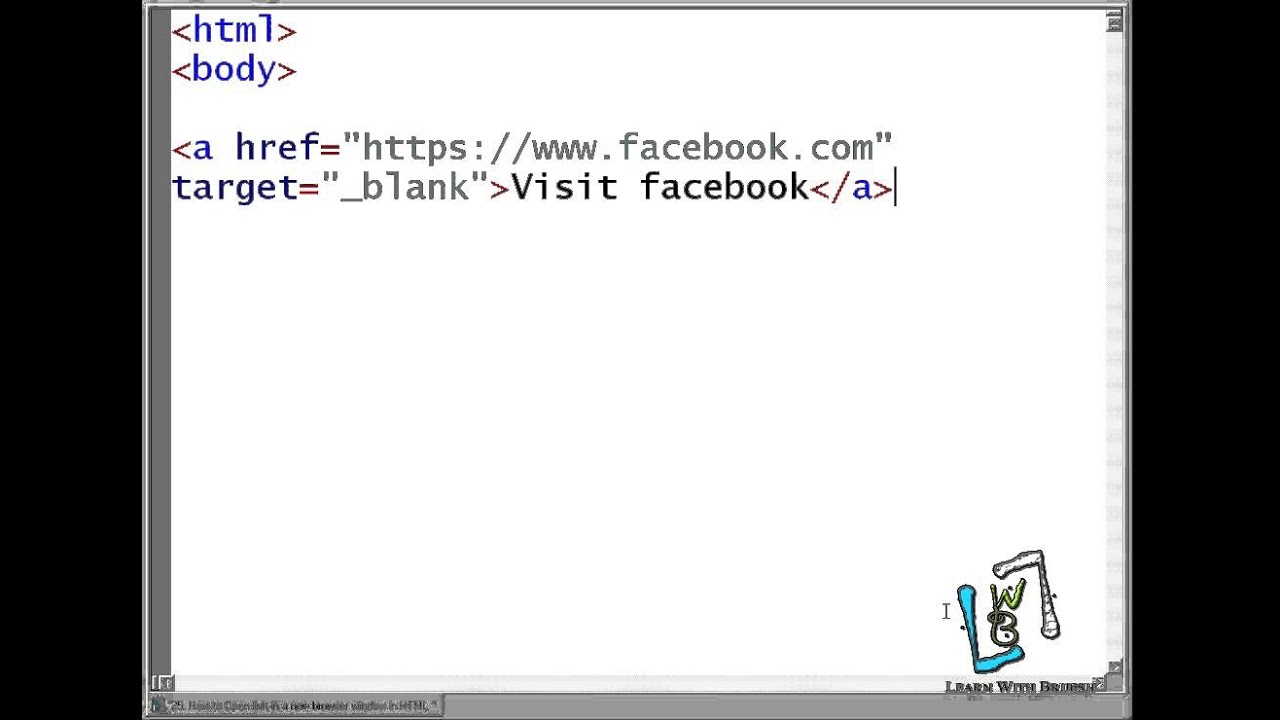Links are created using the a element. Users can click on anything between the opening a tag and the closing tag. You specify which page you want to link to using the href attribute.