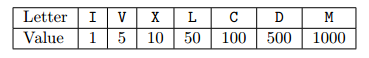 A Roman numeral consists of a set of letters of the alphabet, each letter has a particular value, as shown in the following table: