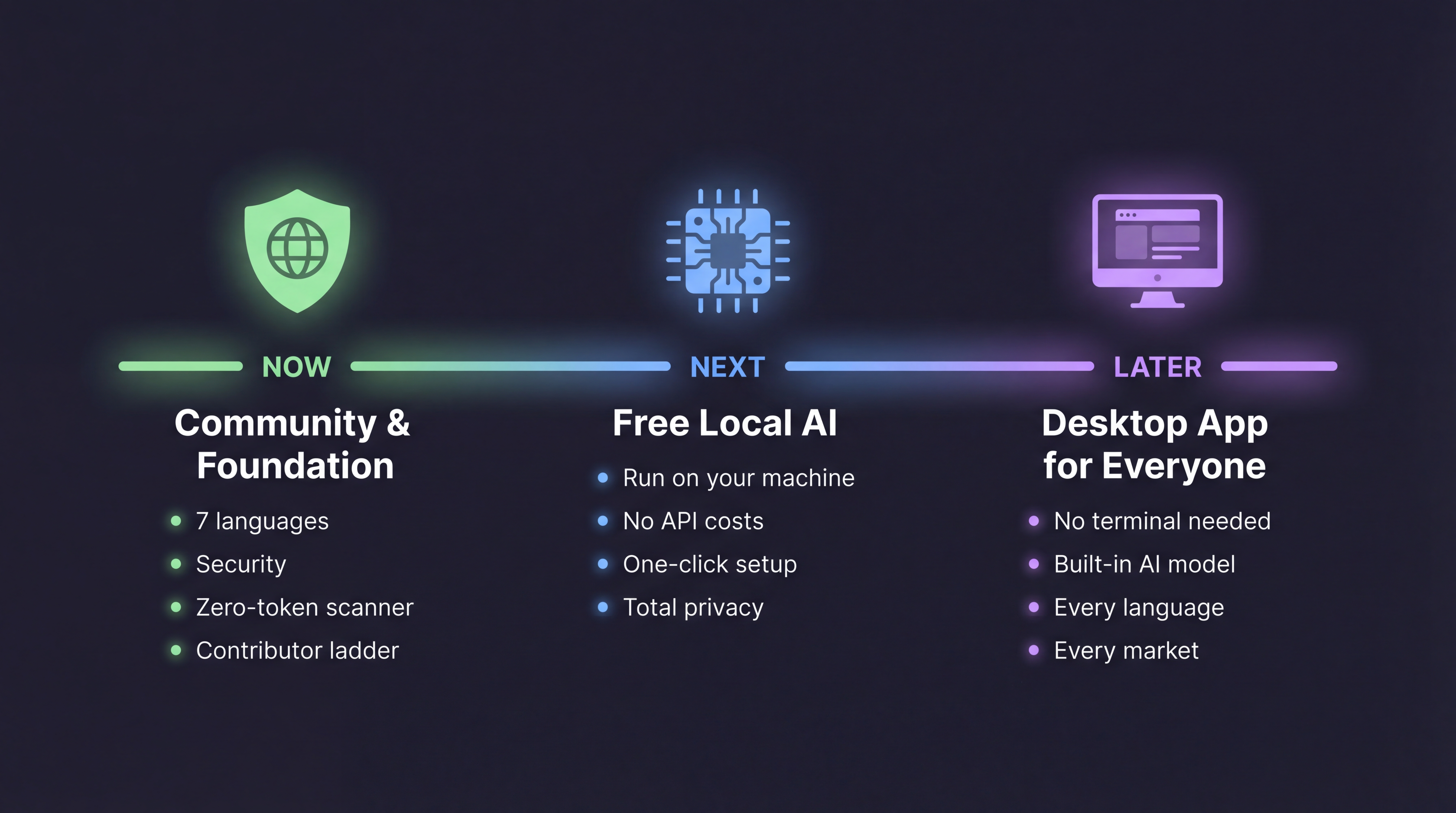 career-ops will become a free, local-first AI job search agent that anyone can run on their own computer — no API keys, no subscriptions, no data leaving your machine.
