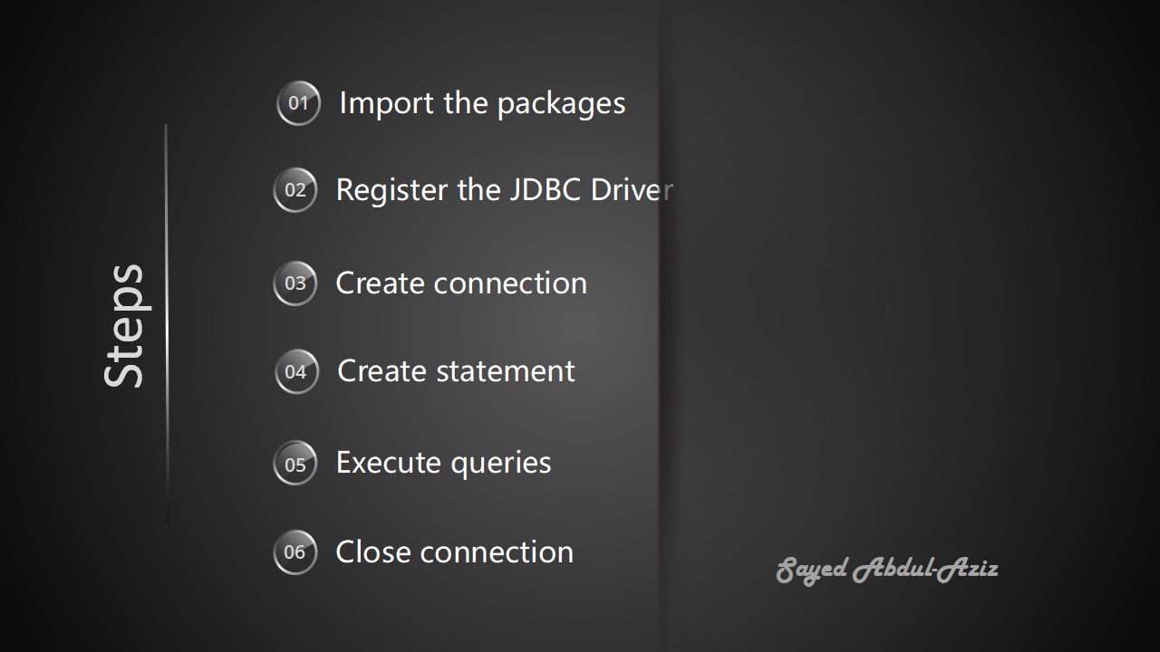 In order to create a JDBC Application, you need to follow a few steps.