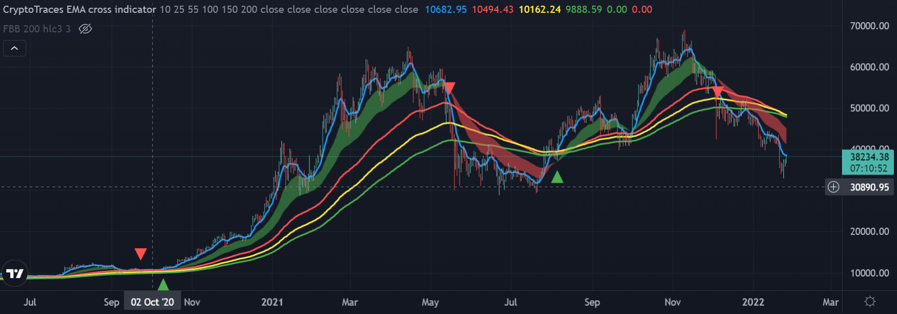 A basic EMA cross indicator for the crypto market with Buy & Sell signals.