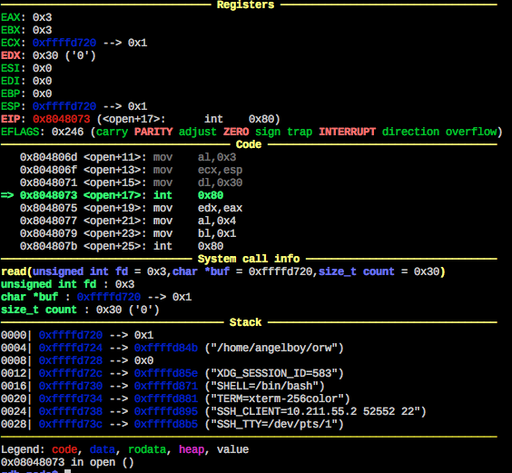- Enhance the display of gdb: colorize and display disassembly codes, registers, memory information during debugging.