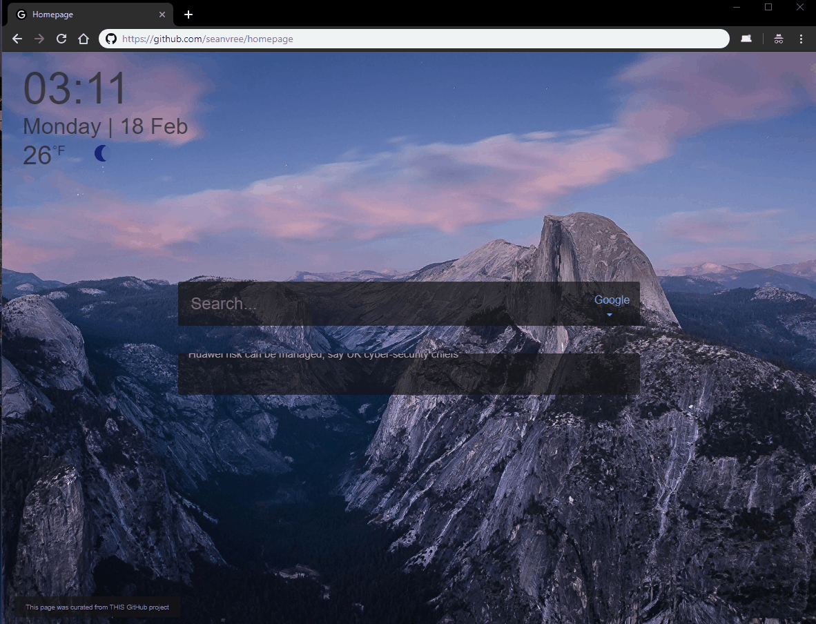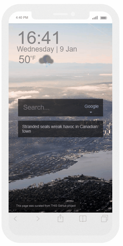 Custom Start/home page (multi LIVE Search) with live animated weather and news ticker - written in HTML/JS. Minimal, self-hosted, and dope.