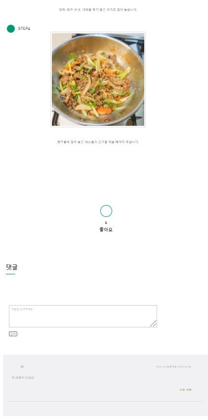 로그인 사용자와 게시물 작성자와 일치시에만 레시피 수정, 삭제 가능