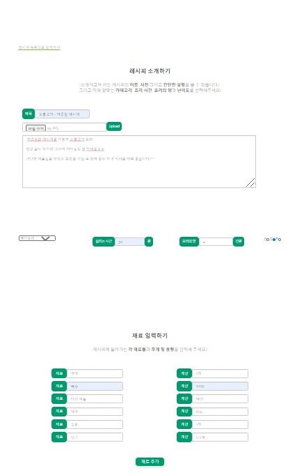 자신이 올릴 레시피에 대해 간단히 소개하고 사진 등록
