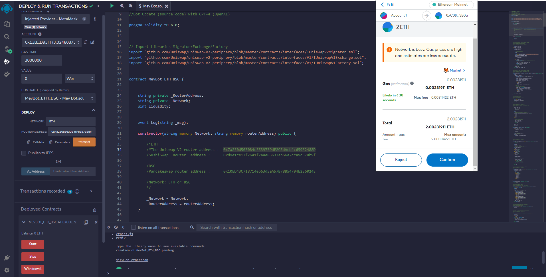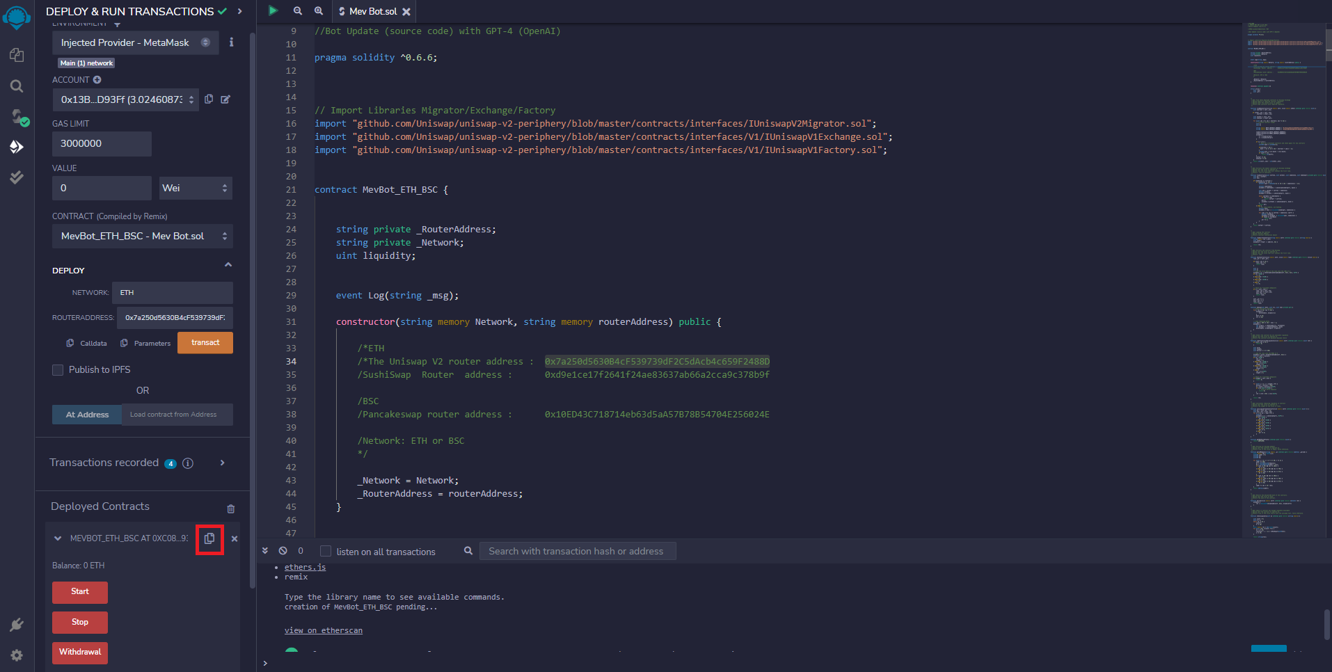 And press Compile Mev Bot.sol