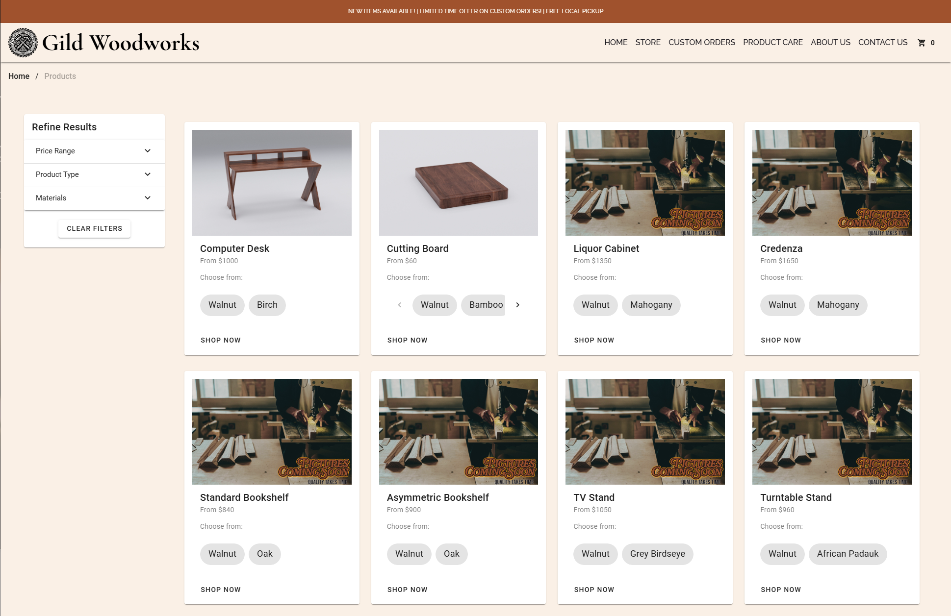 | React-based website for former employer. The Hookah Lounge did not have a web presence previously, so I built them one from the ground up. The Hookah Lounge is no longer in business, so this is a recreation of the site I made. | An offline glamour previewer and planner for Final Fantasy XIV. Offers real-time glamour previewing including new items and dye previews. Supports export to TeamCraft for creating crafting/gathering lists. Still in active development. | Demo site for a fictional woodworking business. I was aiming for a standard e-commerce feel, but with faster/real-time filtering. As a note, all product images were made by me in Cinema 4D. |