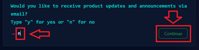 訂閱電郵,看你要輸入「y」或「n」都可以,然後點「Continue」