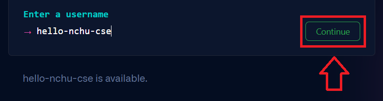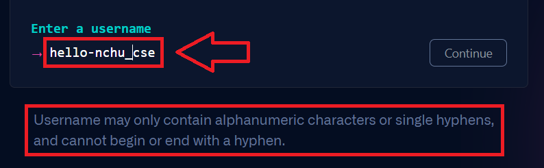 輸入ID(username)後點「Continue」,注意只能是字母和半形「-」號