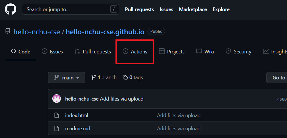 我們點「Actions」看看網頁的建立過程,看看建得怎麼樣