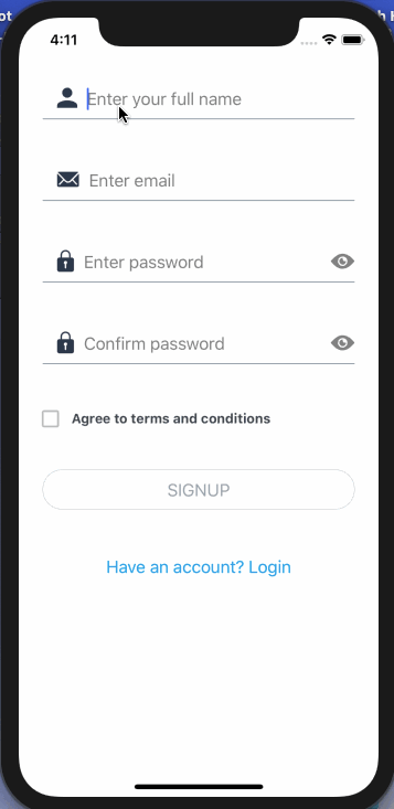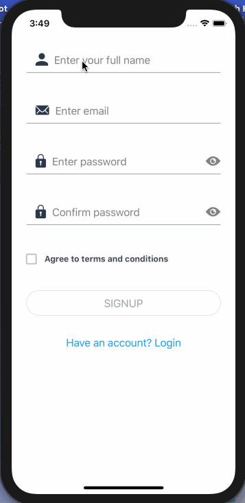 react-native-elementsfor UI elements - show/hide Password Field's visibility 👁