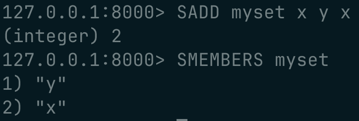 redis-cli -p 8000Example commands: checking if it works :