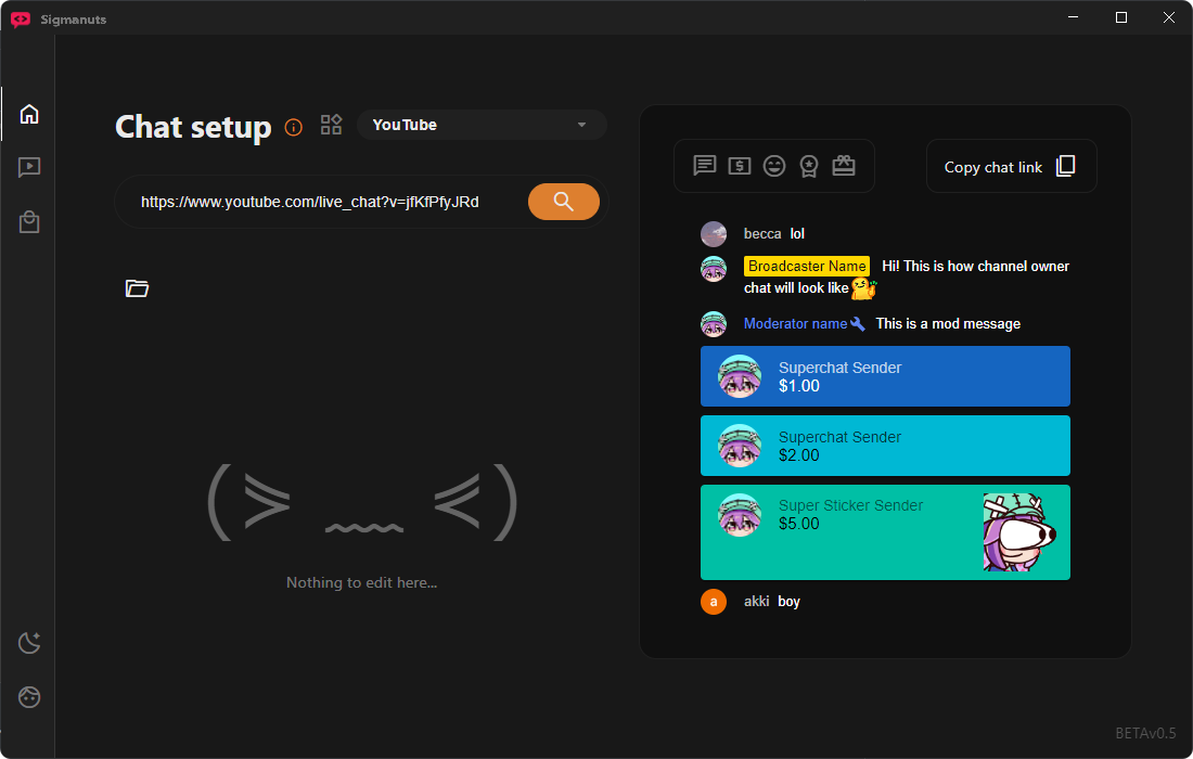 Sigmanuts offers a very flexible experience. The trade-off between having an extra app to run during live stream and having a positive chat experience is worth it!