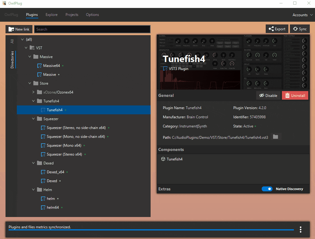 OwlPlug can discover VST2 and VST3 Plugins. OwlPlug is compatible with your previously installed plugins as long as they are all in a specific root directory, for example C:/AudioPlugins. After downloading Owlplug, you can still organize (add, move, delete, ...) your plugins with a file explorer or with your favorite DAW without breaking anything.