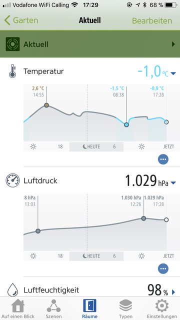 The following 19 observation and forecast values can be displayed and used in HomeKit rules.