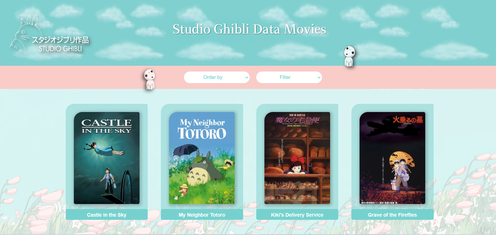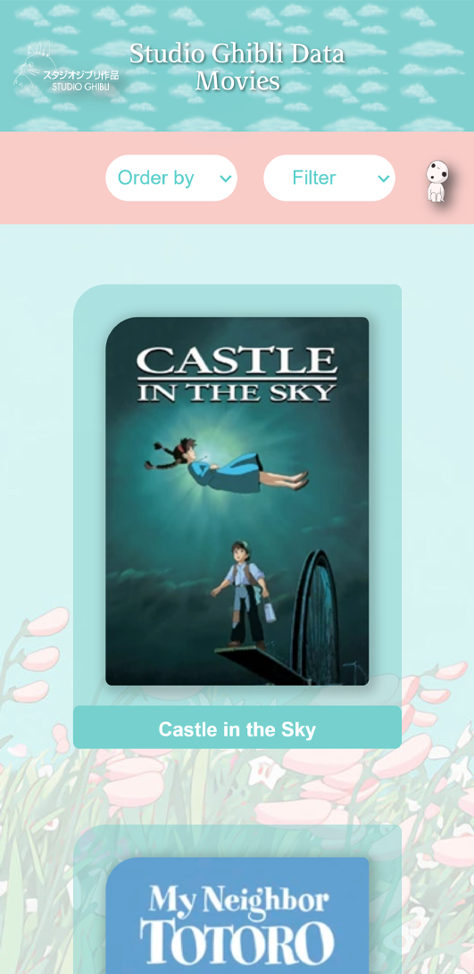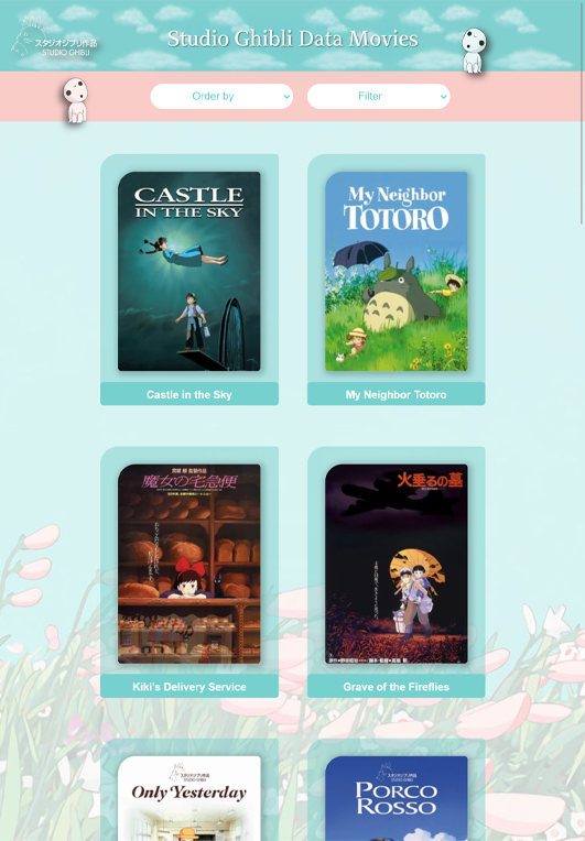 Como dupla decidimos realizar un diseño simple pero llamativo, usando tonalidades pasteles. El sitio será responsivo para que los usuarios puedan verlo donde más les convenga. El sitio fue creado para los fan de Studio Ghibli, para que puedan ver información de cada película.